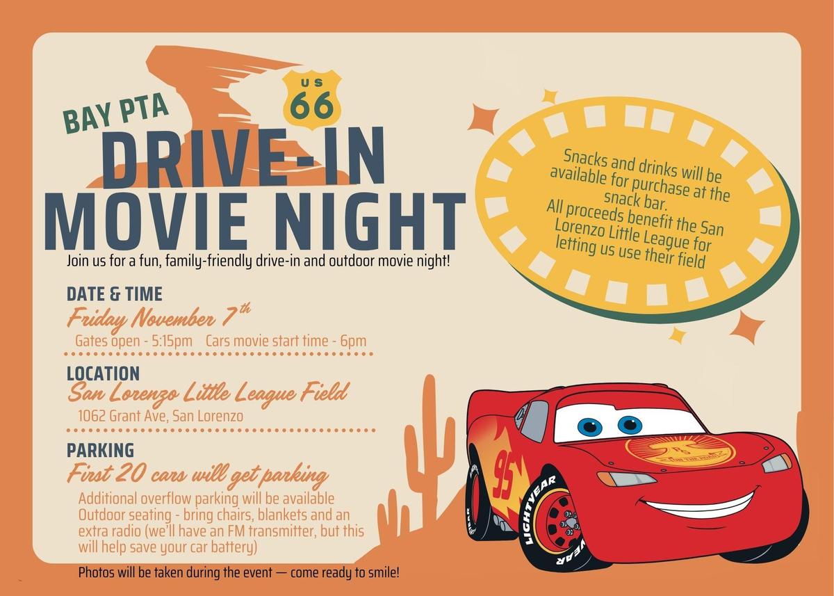 Bay PTA Drive-In Movie Night this is a free event for Bay Families